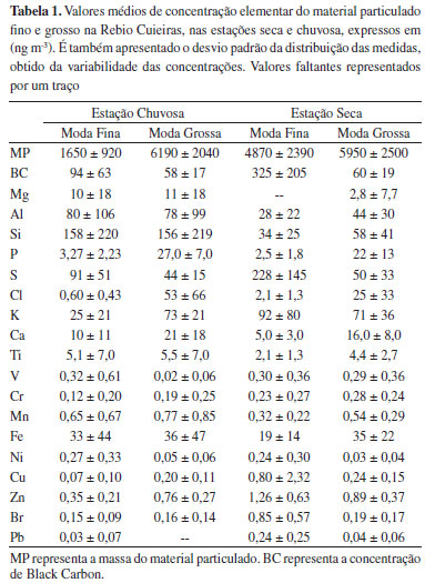 RESULTADOS E DISCUSSÃO Na Tabela 1 são observadas concentrações elementares médias na Rebio Cuieiras bastante similares às reportadas em Balbina.29 Isso indica uma boa similaridade das concentrações elementares para o aerossol na parte central da Bacia Amazônica. A comparação entre as concentrações de massa medidas na Rebio Cuieiras e Balbina pode ser obtida na Figura 2. É possível observar que os dois sítios de amostragem apresentam concentrações similares e valores baixos inerentes às condições remotas da região.