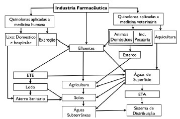 ![]() Figura 2. Rota dos antimicrobianos no ambiente (adaptada da ref. 1)