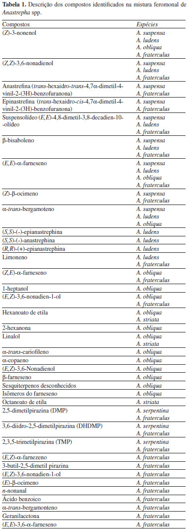 | Semioquímicos de moscas das frutas do gênero Anastrepha Semiochemicals of fruit flies of the genus Anastrepha |