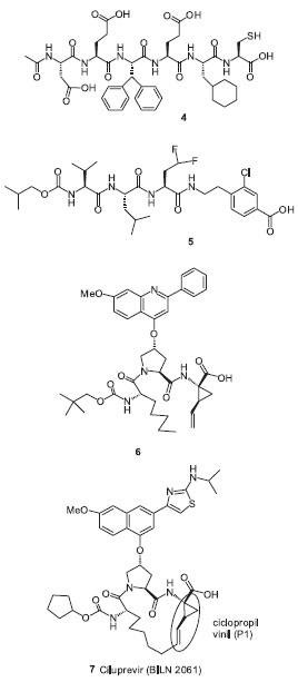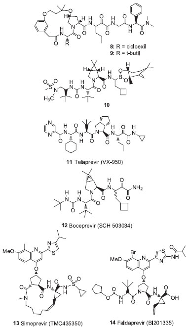 ![]() Figura 3. Estruturas de peptideomiméticos inibidores de HCV protease