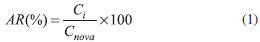 EQUIPAMENTO O sistema LC-MS/MS utilizado consistiu em um cromatógrafo Agilent série 1260 (Agilent, EUA), acoplado a um espectrômetro de massas QTrap 5500 (ABSciex, EUA), equipado com uma fonte de ionizaçao por eletronebulizaçao (ESI) operada no modo positivo. A separaçao cromatográfica foi realizada em uma coluna Poroshell 120 EC-C18 (3,0 x 50 mm, 2,7 µm) provida pela Agilent. Os dados foram adquiridos e tratados utilizando o sistema de aquisiçao Analyst 1.6.2 (ABSciex). Preparo das soluçoes analíticas As soluçoes estoque de 1000 mg L-1 foram preparadas individualmente em metanol e armazenadas em frascos de polipropileno revestidos com papel alumínio para evitar degradaçao, e armazenados em freezer a -20 ºC. A soluçao intermediária foi preparada a partir da diluiçao de cada soluçao estoque com metanol, de forma a obter uma soluçao com todos os analitos na concentraçao de 10 mg L-1. A soluçao dos padroes internos (10 mg L-1) foi preparada de forma similar, exceto para carazolol e carazolol-d7 cujas concentraçoes finais foram 5 mg L-1. A partir das soluçoes intermediárias, foram preparadas soluçoes de trabalho ou soluçoes de fortificaçao com concentraçoes de 1 mg L-1, exceto para carazolol e carazolol-d7 (0,5 mg L-1), sempre em metanol. Estudo de estabilidade A estabilidade foi verificada a partir da análise dos compostos em soluçao e extrato. Para a determinaçao da estabilidade em soluçao, foram analisadas as soluçoes de fortificaçao (1 mg L-1) preparadas semanalmente, de forma a obter tempo de armazenamento de aproximadamente 5 semanas. Três alíquotas de cada soluçao foram diluídas para obtençao de soluçao com concentraçao correspondente a 20 µg L-1 e injetadas para obtençao de média. O cálculo da concentraçao do analito em cada soluçao analisada foi realizado por comparaçao com a soluçao de mesma concentraçao teórica recém diluída, que foi considerada 100%, conforme Equaçao 1.