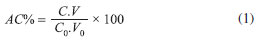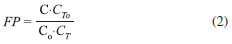 Na qual C0 é a concentraçao inicial do ácido clavulânico na fase aquosa, V0 é o volume da fase aquosa inicial, C é a concentraçao final e V o volume final de AC após a reextraçao. Foi considerado que todo o AC presente na fase orgânica foi reextraído pela etapa de reextraçao com tampao a pH 7,0. O fator de purificaçao (FP) foi calculado pela Equaçao 2: