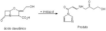 ![]() Figura 2. Esquema da reaçao do ácido clavulânico com o imidazol