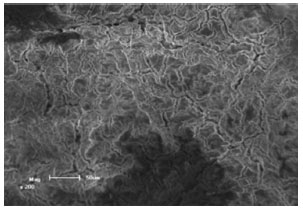 ![]() Figura 2. Micrografia do material do ânodo da bateria de Ni - MH. Aumento: 200x