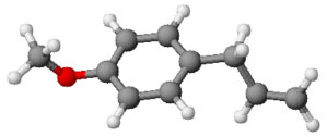 ![]() Figura 1. Estrutura do estragol (modelo bolas e varetas), principal constituinte do óleo essencial de Croton zehntneri, optimizada em programa ACD/3D: ChemSketch