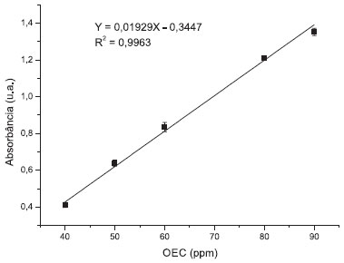 ![]() Figura 4. Curva de Calibraçao do óleo essencial de Croton zehntneri
