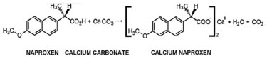 ![]() Figure 2. Acid-base reaction of naproxen and calcium carbonate, containing the chemical structures involved