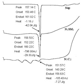 ![]() Figure 3. DSC thermograms of (i) Nap; (ii) N1SM1; (iii) N1C2