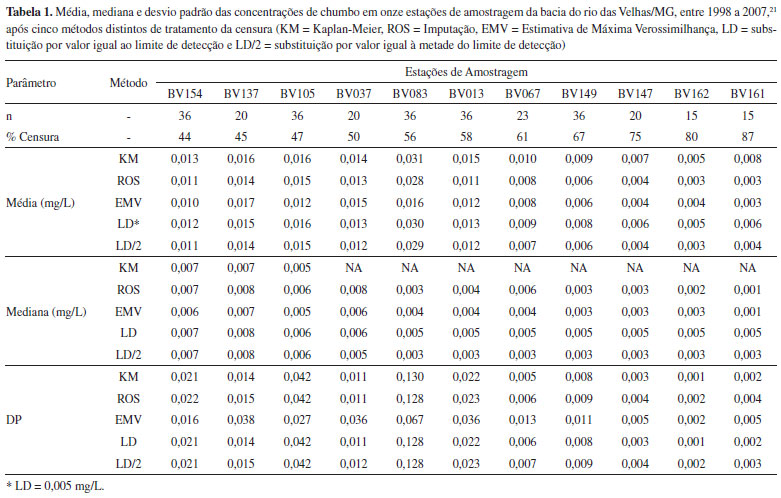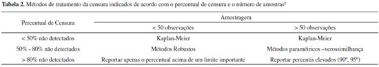 Tratamento de dados censurados em estudos ambientais Treatment of censored data in environmental studies |