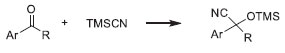 ![]() Figura 6. Reaçao de cianosililaçao de aldeídos (R=H) ou cetonas (R=grupo alquílico), utilizada para caracterizar os sítios ácidos das MOFs