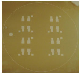 ![]() Figura 3. Fotolito de alta resoluçao utilizado na etapa de fotolitografia do substrato de aço inoxidável