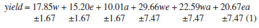 The quadratic model for yield showed a value of R2 = 0.90, and there was no lack of fit at the 95% confidence level. The model is given by (1) and is shown in Figure 2 (A):