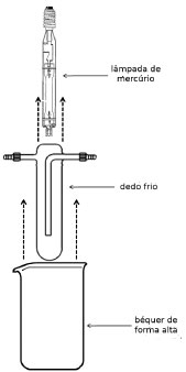 PARTE EXPERIMENTAL Materiais e métodos O reator fotoquímico usado neste experimento foi adaptado de reatores usados em laboratórios de pesquisa para o uso em laboratórios de ensino. O sistema consiste em um béquer de forma alta de 300 cm3 (118 x 64 mm), uma camisa de refrigeração e uma lâmpada de vapor de mercúrio sem o bulbo (Figura 1). A camisa de refrigeração é confeccionada com tubos de vidro Pyrex®, cujo custo é cerca de 50% abaixo do valor de outros aparelhos anteriormente propostos, confeccionados de quartzo. Tal substituição não interfere na obtenção do composto desejado como fica evidenciado pelos espectros de absorção na região UV-Visível do vidro e da solução de pentacarbonilaferro apresentados na discussão deste trabalho.