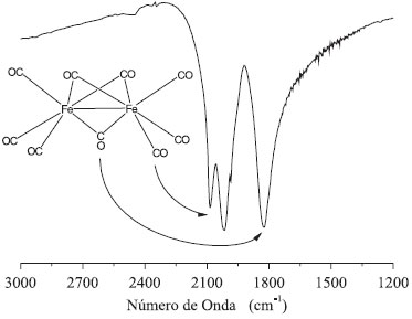 ![]() Figura 4. Espectro de absorçao na regiao do infravermelho do produto eneacarboniladiferro