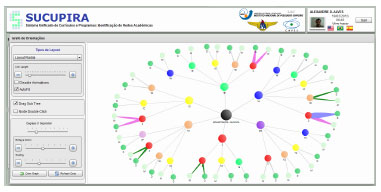 ![]() Figura 3. Rede de contatos identificados nos artigos publicados em periódicos no período de 2002 a 2011 entre os bolsistas PQ da área de Química de acordo com a categoria