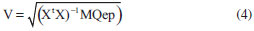 A conversão da amostra em gotículas dispersas de gás (aerossóis) é realizada por um nebulizador, sendo o gás de nebulização (argônio) o responsável pelo transporte da amostra (aerossol) até o plasma. Desta forma, a variável N é um parâmetro importante a ser otimizado, visto que a quantidade do aerossol gerado a partir da amostra e sua introdução no plasma pode afetar a precisão e a exatidão do procedimento analítico. Pode-se observar na Figura 2 que há um acréscimo inicial do sinal analítico (intensidade normalizada) com o aumento de N, isso pode ser explicado pelo maior transporte do aerossol para o plasma, obtendo uma atomização/ionização maior e, consequentemente, maior excitação e emissão dos analitos contidos na amostra. Num momento posterior essa intensidade normalizada é reduzida, devido ao aumento excessivo de N (pois a introdução de grandes quantidades de aerossol da amostra no plasma afeta a energia requerida para desenvolver todos os processos físico-químicos),17,35 diminuindo a intensidade ou até mesmo provocando a extinção do plasma. Já a variável P não apresentou tanta influência no sinal de intensidade, se comparada a N, visto que a faixa de P usada para a otimização foi estreita devido aos limites instrumentais (P limite do equipamento é 1500 W, sendo que P > 1500 W provoca desgaste excessivo do equipamento). Neste contexto foram realizados testes experimentais com P < 1150 W, nos quais se observou a extinção do plasma devido à carga salina do extrato aquoso requerer muita energia. Sendo assim, foi escolhida a faixa de otimização de 1209 a 1491 W (conforme apresentado na Tabela 3). Ao final constatou-se que, nas condições estabelecidas pela otimização, um eficiente processo de atomização/ionização e excitação dos analitos foi obtido, mesmo na presença de amostras salinas. Para a validação do ajuste do modelo desenvolvido para a otimização das variáveis foi aplicada a análise de variância (ANOVA).21,24,26,29 A Tabela 4 apresenta a validação do modelo matemático gerado para otimização das variáveis N e P. O Teste F foi aplicado para verificar a significância da regressão, visto que um F calculado maior que o F tabelado indica uma boa regressão e, consequentemente, um modelo matemático que representa satisfatoriamente seu experimento.21 Desta forma, foi obtido um F = 246,06 > F4,6 = 4,53 (tabelado), concluindo que o modelo está significativamente correto. A distribuição do resíduo foi efetuada para a comprovação da significância estatística do modelo, para isso, foi verificada a falta de ajuste e o erro puro. Neste caso, um F calculado menor que o F tabelado indica ausência de falta de ajuste do modelo matemático desenvolvido. Sendo assim, foi obtido um F = 0,258 < F4,2 = 19,25 (tabelado), concluindo que o modelo não possui falta de ajuste. Portanto, o modelo desenvolvido está significativamente correto e bem ajustado para um nível de confiança de 95%. Os desvios absolutos (V) dos coeficientes da equação do modelo foram obtidos por meio da Equação 4, apresentada abaixo.21 ![]() Na qual X é a matriz de contraste, Xt é a transposta de X e MQep é média quadrática do erro puro. A Equação 5 apresenta o modelo matemático desenvolvido para otimização das variáveis N e P, acompanhado pelos seus desvios absolutos. ![]() Assim, visando estabelecer uma condição ótima (pontos críticos) para determinação dos cinco elementos foi aplicada à Equação 5 uma derivada parcial em relação às variáveis N e P, apresentando valores codificados de -1,19 e -0,78, respectivamente. Os pontos críticos codificados foram obtidos igualando a derivada da Equação 5 à zero. Os valores críticos reais (Zr) de N e P foram obtidos por meio da Equação 6, apresentada abaixo:24 ![]() Na qual Xn é o valor codificado, Zr é o valor crítico real, Zm é a média dos valores dos níveis +1 e -1 e ΔZ é a variação entre os valores dos níveis +1 e -1. Portanto, o modelo matemático sugere que a condição ótima para a determinação de Na, Ca, Mg, Sr e Fe no extrato aquoso de petróleo por ICP OES é: N = 0,53 L min-1; A = 0,5 L min-1 e P = 1272 W. As técnicas multivariadas vêm sendo largamente empregadas por envolverem um menor número de experimentos, rapidez e alta eficiência, além de substituírem o método tradicional univariado, no qual o comportamento de cada variável que afeta o processo é estudado individualmente, não sendo consideradas as possíveis interações entre as mesmas.10,19,22-30 Desta forma, a condição ótima para a determinação de Na, Ca, Mg, Sr e Fe no extrato aquoso de petróleo por ICP OES garante resultados mais confiáveis que aqueles obtidos por métodos univariados. A Tabela 5 apresenta as características de desempenho do procedimento desenvolvido, nas condições operacionais otimizadas, empregando estatística multivariada. Análise exploratória: discriminação dos campos produtores de petróleo e das amostras de refino Embora a composição do petróleo seja majoritariamente de hidrocarbonetos, a determinação dos metais no petróleo pode ser uma proposta interessante para prever a origem das amostras, visto que a composição e os teores dos metais variam de um campo produtor para outro. Sendo assim, após a definição das condições ótimas de operação do ICP OES para a determinação dos metais, foi obtida uma matriz de dados 54 × 5 com o resultado das concentrações dos metais. A Tabela 6 apresenta a matriz de dados construída a partir da concentração dos metais nos extratos aquosos de petróleo, analisadas em triplicatas.