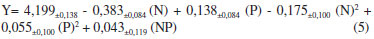 ![]() Figura 1. Representaçao gráfica da significância das variáveis estudadas P, N e A e de suas interaçoes