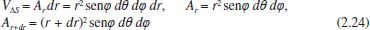 Neste caso, o gradiente de concentração da espécie que está se difundindo é dado pelas derivadas parciais de C em relação às variáveis r, θ e φ. Utilizando a Regra da Cadeia17 para derivadas de funções de várias variáveis, tem-se: ![]() No caso da difusão ser simétrica na direção do raio r pode-se tomar, sem perda de generalidade, o raio coincidindo com a direção x, ou seja, θ=0 e φ = ![]() e o gradiente de concentração, em termos de coordenadas esféricas, dado por ![]() Considerando agora um fluxo de espécies em estado estacionário, do centro para a superfície de uma esfera de raio r, pode-se assumir que ao redor de um ponto ao longo do raio, ou seja, quando Δr → 0, Δθ → 0 e Δφ → 0, o fluxo se comporta segundo a 1ª lei de Fick, ou seja, é proporcional ao gradiente de concentração da espécie que se difunde. Isso é possível pelo fato da direção radial ser perpendicular ao plano tangente à esfera em cada ponto de interseção do raio com a superfície da esfera. Assim, em uma vizinhança suficientemente pequena deste ponto pode-se considerar o fluxo através do plano tangente à esfera (aproximação linear). Portanto, a ideia utilizada para a formulação teórica deste problema é análoga à utilizada no caso da difusão planar. Sejam dr, dθ e dφ variações infinitesimais no raio r e nos ângulos θ e φ, respectivamente. Com isso tem-se uma região de camada esférica tridimensional de espessura dr, formada entre a esfera de raio r e a esfera de raio r + dr, conforme mostra a Figura 4: