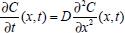 DIFUSÃO Difusão é o movimento térmico de qualquer partícula de um líquido, gás e alguns sólidos a temperaturas acima do zero absoluto. A difusão pode ser discutida do ponto de vista das leis de Fick, na presença de um gradiente de concentração, ou do ponto de vista físico e atomístico considerando o movimento aleatório das partículas, por exemplo, das moléculas de água em água pura. A difusão causada pelo movimento aleatório de partículas (moléculas, íons, átomos) na ausência de um gradiente de concentração é denominada autodifusão (self-diffusion ou tracer diffusion) e corresponde à difusão de uma espécie individualmente. Isso pressupõe que numa mistura as espécies se difundem sem interação significativa entre elas, o que equivale à situação ideal, ou seja, por exemplo, uma solução muito diluída. O coeficiente de difusão é denominado coeficiente de autodifusão. A velocidade do movimento depende da temperatura, viscosidade do meio e da massa/tamanho da partícula. A difusão explica o fluxo líquido de matéria de uma região de maior concentração para uma de menor concentração. Ao se igualar as concentrações (atividades), esse fluxo líquido de massa cessa, porém, as partículas continuam em movimento, autodifusão. Tem-se, então, uma mistura gradual de materiais até chegar a uma distribuição uniforme, estabelecendo-se um equilíbrio com partículas em movimento, denominado equilíbrio dinâmico. A difusão continua, mas sem um fluxo líquido de matéria. Para maiores detalhes sobre autodifusão sugere-se consultar a literatura.3,4,5,15,16 Em particular, neste trabalho, tem grande interesse a análise da situação em que há fluxo líquido de matéria porque está diretamente relacionado com a maioria das técnicas eletroquímicas. A difusão é um fenômeno físico irreversível em que ocorre o transporte de massa pelo movimento de íons ou moléculas, na presença de um gradiente de potencial químico. O gradiente de potencial químico pode ser substituído por gradiente de concentração no uso de técnicas eletroquímicas. O movimento causado pelo gradiente se dá na direção de maior para menor concentração, procurando encontrar um equilíbrio. A difusão pode ocorrer em uma única direção (unidimensional), como no caso do fluxo sanguíneo por uma artéria, ou ser bidimensional, como no caso de uma gota de tinta se espalhando sobre uma superfície plana, ou tridimensional, como no caso de um gás se difundindo no espaço ou de espécies químicas se difundindo em solução ou num sólido. Matematicamente é descrita por uma equação diferencial parcial, envolvendo espaço e tempo, sendo que em coordenadas cartesianas sua forma geral é: ![]() em que C representa a concentração da espécie que se difunde na posição (x,y,z) no instante de tempo t e D é chamado coeficiente de difusão. Dependendo da espécie, este coeficiente pode variar com a concentração, porém esta variação normalmente é muito pequena e, por isso, D é considerado constante na maioria dos casos, desde que não varie a temperatura. Esta equação pode também ser escrita em coordenadas esféricas ou cilíndricas, de acordo com o fenômeno que está sendo estudado, o que pode facilitar muito os cálculos. Nos processos eletroquímicos são utilizados eletrodos de diferentes geometrias como planar, cilíndrica, esférica etc. A difusão linear semi-infinita, ou seja, na direção perpendicular à superfície do eletrodo ocorre em eletrodos planos com raio maior que a espessura da camada de difusão. Nos outros casos há influência da difusão não linear: esférica (eletrodo de gota estática de mercúrio), eletrodo gotejador de mercúrio, microeletrodos, eletrodos micro heterogêneos como mini redes de metal onde a espessura do fio da rede é menor do que a espessura da camada de difusão, dentre outros.11 Assim, o objetivo deste trabalho é apresentar os métodos matemáticos presentes na equação de difusão aplicada à eletroquímica, em todos os seus detalhes, desde a dedução das equações até suas resoluções, abordando coordenadas cartesianas, esféricas e cilíndricas. Difusão planar Denomina-se difusão planar aquela que ocorre através de uma região plana, de área A, na direção (unidimensional) perpendicular ao plano. Considerando esta direção coincidente com o eixo-x no sistema cartesiano, isso significa que a concentração da espécie varia apenas na direção x, sendo constante nas direções y e z. Neste caso, o fluxo da espécie num ponto x e num instante t, J(x, t), é definido como sendo a quantidade de matéria m transferida por unidade de tempo, através da área A, ou seja, ![]() conforme ilustrado na Figura 1.