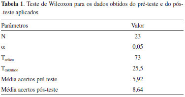 CONTEXTO E MÉTODO DO TRABALHO O corpo discente da disciplina Introduçao à Engenharia Química é formado por alunos que estao no primeiro semestre do curso de Engenharia Química. Esta disciplina representa o primeiro contato do aluno com os conhecimentos que serao abordados ao longo do curso e serve como motivaçao para a futura profissao. Além desta, os alunos cursam disciplinas referentes ao ciclo básico de Engenharia, como Química Teórica e Experimental, Física, Cálculo e Geometria Analítica. A atividade proposta como uma alternativa ao Ensino Tradicional Vigente (ETV) foi realizada em uma aula de 3 h e 30 min. A aula foi dividida em quatro momentos: breve introduçao ao tema da atividade, aplicaçao do pré-teste sobre conceitos de transferência de massa, atividade experimental e aplicaçao do pós-teste, contendo informaçoes similares ao pré-teste. Na introduçao ao tema, foi realizada a conceituaçao dos termos para que se facilitasse a interpretaçao das questoes do pré-teste, mas nao foram discutidos os conceitos importantes para a transferência de massa, que seriam vivenciados na atividade experimental. O pré-teste e o pós-teste consistiram em cinco questoes de múltipla escolha relacionadas ao conteúdo abordado em aula. A atividade experimental foi realizada de forma intercalada à discussao entre o grande grupo sobre os resultados que eram esperados. Após, dava-se o significado à prática também pela discussao entre os alunos do grande grupo. O teste estatístico nao paramétrico de Wilcoxon foi utilizado para analisar os resultados obtidos no pré-teste e no pós-teste. A teoria que embasa a análise estatística utilizada objetiva avaliar os dados pareados e, nesse caso, fornecer subsídios para verificar se a aprendizagem dos alunos foi estatisticamente significativa após a realizaçao do experimento proposto em sala de aula. Segundo Callegari-Jacques19 a ideia que norteia o teste é a de que se o tratamento A produz valores maiores que o tratamento B, entao as diferenças de sinal positivo serao em maiores número e grau do que as diferenças de sinal negativo. Ainda, se o tratamento nao tiver efeito, entao as diferenças positiva e negativa devem se anular. Além disso, ao fim da atividade, foi enviado um e-mail com uma pesquisa de satisfaçao sobre a atividade realizada. A participaçao dos alunos nessa etapa foi voluntária. O objetivo da realizaçao dessa etapa foi buscar captar a percepçao dos alunos quanto à atividade, isto é, saber qual a opiniao destes com relaçao à disciplina e às atividades alternativas ao ETV realizadas em aula.