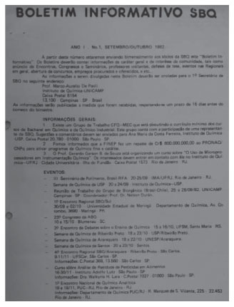 ![]() Figura 1. Primeiro Boletim informativo da SBQ (setembro/outubro1982)