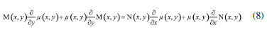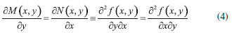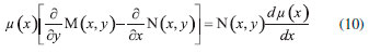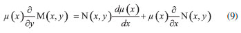 UM POUCO DE MATEMATICA: EQUAÇOES DIFERENCIAIS EXATAS E INEXATAS Iremos considerar nesse texto apenas as funçoes de duas variáveis que sao as mais importantes em um curso inicial de termodinâmica. Um pouco do formalismo das equaçoes diferenciais fornece, como veremos, todas as ferramentas necessárias para o estudo das funçoes de estado e variáveis de processo. Seja uma funçao de duas variáveis f(x,y), cujas derivadas parciais sao contínuas em um plano R2 conexo. A diferencial total de f(x,y) é dada por: ![]() para f(x,y) = c, onde c é uma constante arbitrária, temos que: ![]() Nessas condiçoes podemos gerar uma equaçao diferencial de primeira ordem calculando a diferencial total de f(x,y). Inserindo as notaçoes M(x,y) = f(x,y)/x e N(x,y) = f(x,y)/y, podemos reescrever a Equaçao 2 na seguinte forma: ![]() Logo, a Equaçao diferencial 3 e, consequentemente a Equaçao 2, é denominada uma equaçao diferencial exata se, e somente se, a igualdade entre as derivadas cruzadas em (4) for satisfeita em todos os pontos do plano R2 conexo. ![]() A igualdade (4) também é conhecida como condiçao ou critério de Euler para a distinçao entre equaçoes diferenciais exatas e inexatas. A vantagem de uma dada funçao f(x,y) satisfazer o critério de Euler, quando sua diferencial pode ser escrita como na Equaçao 1, está no cálculo da integral sobre um caminho C, que se torna simplificado. Nesse caso, a integral de f nao depende do caminho, mas somente dos extremos especificados: ![]() onde Algumas equaçoes diferenciais nao podem ser resolvidas diretamente. Entretanto, ao multiplicá-las por uma determinada funçao µ, conhecida como fator integrante, é possível obter uma soluçao para tal equaçao diferencial. Tal artifício é conhecido como método de Leibniz. Para algumas equaçoes diferenciais inexatas é possível utilizar o método de Leibniz para torná-las equaçoes diferenciais exatas. Para exemplificar, podemos considerar a Equaçao diferencial 3 e assumir que essa é inexata neste momento. Multiplicando essa equaçao por uma funçao µ(x,y) obtemos: ![]() Para satisfazer a condiçao de Euler, temos que: ![]() logo, ![]() aqui o problema pode ser simplificado se o fator integrante, ou seja, a funçao µ(x,y), for de uma única variável, tal como µ(x,y) → µ(x). Sendo assim, a Equaçao 7 pode ser escrita como: ![]() rearranjando os termos: ![]() finalmente: ![]() Sendo assim, se