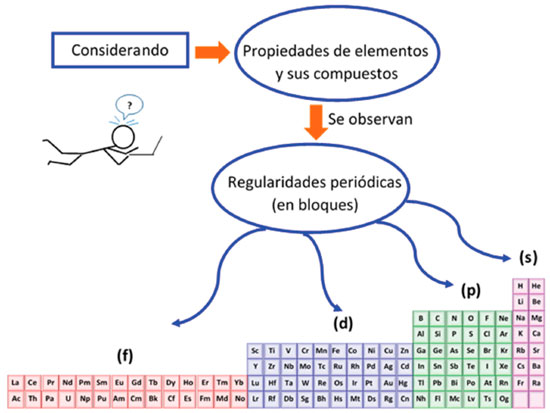 ![]() Figura 1. Esquema de la periodicidad de los elementos y sus compuestos, interpretada en bloques separados.8,25