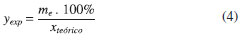 xteórico é a conversao teórica. A conversao experimental (yexp é calculada por meio da Equaçao 4.