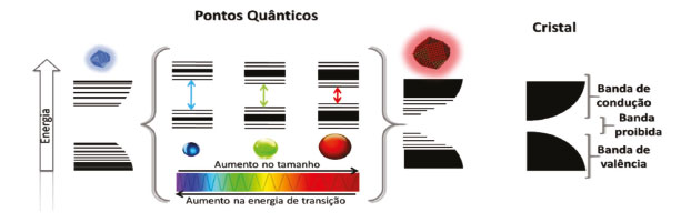 ![]() Figura 1. Representação do efeito de variação da energia de banda proibida em função do tamanho da nanopartícula