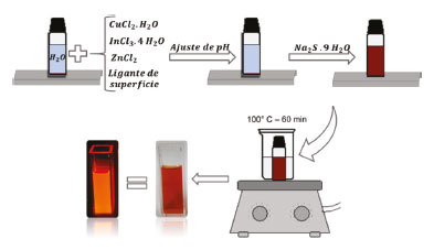 ![]() Figura 8. Esquema ilustrativo do procedimento de síntese dos PQs de CIZS