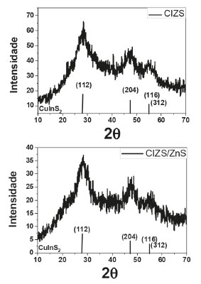 ![]() Figura 11. Difratogramas de raios X das amostras de CIZS e CIZS/ZnS, respectivamente