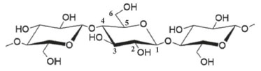 ![]() Figura 6. Estrutura do fragmento da cadeia polimérica da celulose (Figura gerada com o programa ChemSketch versão gratuita)