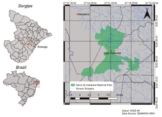 ![]() Figura 1. Serra de Itabaiana National Park with Cipó Waterfall location