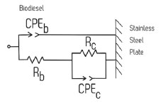 ![]() Figure 4. Equivalent circuit used for modelling the EIS results that describe the biodiesel impedance behavior during the decantation