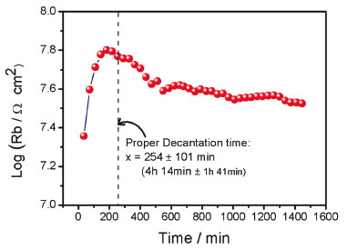 ![]() Figure 5. Contact resistance (Rc) variation with decantation time