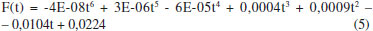 O segundo passo foi a criação dos códigos de referência dos tipos de fontes (SCC). O padrão para o inventário de fontes móveis é um código de 10 dígitos, sendo que cada 2 dígitos fazem referência a um tipo específico de informação. Os dois primeiros dígitos se referem às fontes móveis (por padrão a numeração começa com 22), tipo de combustível, tipo de veículo, tipo de rodovia e tipo de processo, respectivamente. No caso dos tipos de combustíveis foi adotado a codificação "x2" para os veículos a gasolina, etanol e flex, visto que o modelo não possui um padrão para motores que consumam apenas etanol puro, além disso a gasolina no padrão brasileiro contém até 27% de etanol.56 Os códigos 11, 21, 32, 41, 42 e 72 foram adotados para motos, automóveis, ônibus rodoviário, ônibus urbano, veículos comerciais leves, veículos pesados, respectivamente. O código 02 foi adotado para os veículos movidos a Diesel.29 As emissões veiculares foram divididas em dois grupos, no primeiro estão as rodovias de maior tráfego veicular que foram classificadas como em vias expressas (código 04). No outro grupo, denominado de demais vias (código 05), foram incluídas as vias secundárias, arteriais e locais. Os dois grupos foram tratados como fontes emissoras lineares (fontes linha). Ainda houve a separação das emissões de veículos leves, pesados e tipo de combustível utilizado. O código 50 foi adotado, pois este permite agrupar todos os processos de exaustão em apenas um código. A definição dos códigos utilizados pode ser vista na Tabela 1S. Após a codificação, é possível criar o arquivo com dados do inventário de fontes móveis por meio dos dados brutos do Inventário de Fontes Móveis da Região Metropolitana do Rio de Janeiro tendo como referência o ano de 2013.4 Foi criado o arquivo "mbinv.txt", que é o arquivo de entrada de dados do inventário para o SMOKE. Nesse arquivo é necessário informar o COSTCY, o SCC, o percentual do poluente emitido de acordo com o SCC e o código do poluente. O próximo passo para que estes dados possam ser interpretados pelo SMOKE é a conversão das informações geográficas de latitude e longitude em coordenadas cartesianas (x, y). A conversão é feita usando o arquivo control_variable_grid.csv fornecido pelo SA. Nesse arquivo, a localização dos arquivos de saída do MCIP, contendo as informações da grade (GRIDDESC) e as informações da localização dos diretórios onde encontram-se os mapas nos formatos adequados, devem ser informados. A criação da grade ocorrerá depois do preenchimento dos arquivos necessários. Nesse mesmo arquivo são criados pontos em coordenadas cartesianas para leitura do SMOKE, visto que este interpreta apenas dados em formato matricial. Ele é formado por informações da posição da via e do percentual de poluente que é emitido por cada trecho da via. As etapas descritas anteriormente são fundamentais para a criação das tabelas de referência cruzada do SMOKE. No caso do Brasil, o modelo para descrição das fontes móveis tem limitações, pois o utilitário MOVES do SMOKE só funciona para o modelo desenvolvido para os Estados Unidos devido a problemas de formatação dos arquivos. A mudança na formatação dos arquivos leva à mudança na referência geográfica, o que demandam modificações nos arquivos preparados para o caso brasileiro. Por esse motivo, o arquivo que descreve as fontes móveis (mbinv.txt) teve que ser modificado para um arquivo que descreve fontes áreas (arinv.txt). Com essa modificação, cada trecho de via passou a ocupar um percentual do espaço na grade e as emissões que no arquivo de fontes móveis que estavam em gramas por hora foram alteradas para toneladas por ano. Inicialmente foi feita apenas a inserção dos dados das rodovias contidas no município do Rio de Janeiro, visto que alguns trechos das vias fornecidas no inventário de fontes móveis continham pontos fora do domínio. Os dados do inventário foram adicionados ao programa Quantum GIS,57 através das coordenadas UTM contidas nele. Perfil temporal Outra etapa importante na criação dos bancos de dados do SMOKE é a criação de um perfil temporal na forma de arquivos que serão lidos pelo SMOKE. Esses arquivos foram gerados através da função horária de tráfego considerando uma via de tráfego intenso, a partir das informações obtidas no inventário de emissões de fontes veiculares da região metropolitana do Rio de Janeiro ano base de 2013.4 A equação 5 descreve a função horária, onde t representa as horas, em termos percentuais da variação da frota (F) ao longo de um dia.4 ![]() Com base nos valores gerados pela equação 5 foi criado uma codificação chamada de 2013rj para o arquivo temporal. Essa codificação é utilizada no arquivo atref.txt para buscar o perfil horário das emissões no arquivo atpro_hourly.csv. Especiação química Para a modelagem com o CMAQ é necessário informar as espécies químicas emitidas pelas fontes de acordo com o modelo químico a ser utilizado. Dessa forma, é necessário obter dados de especiação química, seja por meio de estudo das espécies ou por meio de dados da literatura. Sendo assim, após realizado a seleção das espécies, deve-se escolher o modelo químico ao qual irá realizar a simulação. Nesse estudo foi escolhido o modelo químico SAPRAC99 e os dados da especiação química utilizados nos modelos foram obtidos na literatura.14 A Tabela 2 mostra os percentuais das concentrações das espécies químicas agrupadas no modelo químico SAPRC99.58,59 O agrupamento do modelo SAPRAC99 é feito pela reatividade dos compostos com o radical OH, compostos com reatividade próxima fazem parte do mesmo grupo. A Tabela 3 mostra o agrupamento dos compostos químicos e a Tabela 2S apresenta os compostos químicos pertencentes aos grupos do SAPRC99.58,59