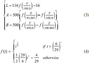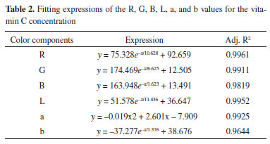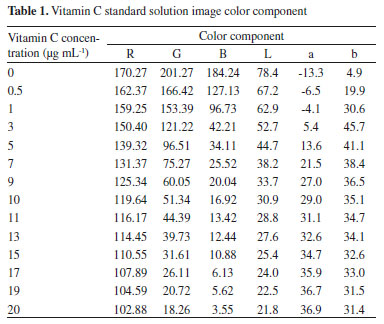![]() Figure 3. Color and color components of the standard vitamin C solutions