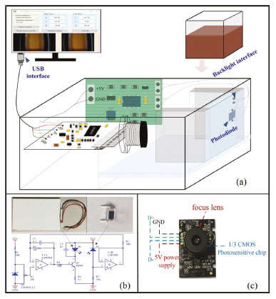 EXPERIMENTAL Design of experimental device Device structure The experimental system consists of the solution image acquisition device and image analysis software. The configuration of the system is shown in Figure 2(a).