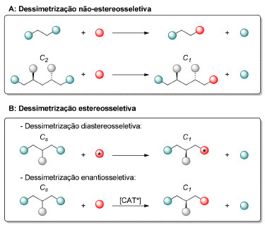 ![]() Esquema 9. Diferentes tipos de dessimetrização. "*" se refere a um reagente ou catalisador quiral