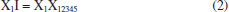 ![]() Figura 2. Confundimentos dos efeitos das interações de quarta ordem (X1234 X1235 X1245 X1345 X2345) com os efeitos principais (X5, X4, X3, X2 e X1), respectivamente; e dos efeitos de segunda ordem (X12; X13; X14; X15; X23; X24; X25; X34; X35; X45;) com os efeitos de terceira ordem (X345; X245; X235; X234; X145; X135; X134; X125; X124; X123), respectivamente