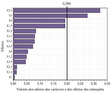 ![]() Figura 5. Representação gráfica da significância das variáveis estudadas e de suas interações