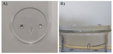 ![]() Figura 5. Gotas de água, óleo e glicerina (da esquerda para a direita) A) vista superior; B) vista lateral