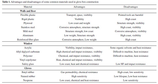 MATERIALS AND METHODS Glove box construction All materials presented in Table 2 were acquired locally. The wooden box was produced by a local joiner, in accordance with the dimensions given in Figure 1, using white MDF (medium density fiberboard) of 15 mm of thickness.