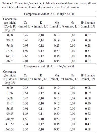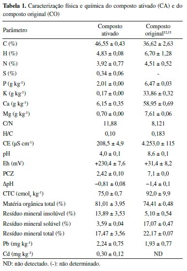 Ativação de composto orgânico com ácido fosfórico e os efeitos na adsorção de Pb e Cd Activation of organic compost with phosphoric acid and the effects on Pb and Cd adsorption |