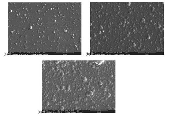 Characterization of Ni-P film deposited at different temperatures As temperature is a key factor in the electroless deposition we have prepared three samples in different temperatures (40, 50 and 60 ºC). At 30 ºC, it was not observed any deposition. The characterization by SEM of Ni-P film deposited using different temperature depositions aimed to evaluate the syntheses behavior, as can be observed in Figure 4.