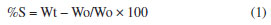 EXPERIMENTAL SECTION Materials and methods Chitosan, with more than 85% degree of N-deacetylation, practical grade (from crab shells), and acetic acid, (analytical grade) were obtained from Sigma-Aldrich (USA). Glutaraldehyde was purchased as a 50% stock solution from Merck Chemical Co. (Germany). HU (pharmaceutical grade) was sourced from the Iraqi pharmaceutical industry. Instrumentation The instruments used for the characterization and evaluation of the HU release from the formulated matrix: UV absorption spectrophotometer UV-1100 PerkinElmer was used in this study with 3.5 mL quartz cells between 200-700 nm. All the measurements were carried out at a controlled temperature (27 ± 2 °C) Bruker FT-IR Affinity-1 spectrophotometer (at the College of Pure Sciences, Thi Qar University) was used for the characterization of the products. X-ray diffractometer (Analytical X'Pert Pro MPD), Netherlands (at the College of Sciences, Basrah University). Electron microscopy (FEI Nova Nano SEM 450), Netherland (at the college of sciences, Basrah University). Procedure Preparation of the cross-linked chitosan matrix A 50 mL round bottom reaction vessel fitted with a condenser, dropping funnel, and magnetic stirrer was charged with 1 g of chitosan and 10 mL of 2% acetic acid. The contents were mixed with a magnetic stirrer for 24-48 h or until a homogenous solution was obtained. Then 3 mL of 0.25% solution of glutaraldehyde in water were added dropwise within 20 min. Mixing was continued for 1 h. At the end of the reaction, sodium hydroxide solution (10%) was added dropwise with continuous mixing to neutralize the reaction medium. As a result, a viscous, partially cross-linked gel product was formed. The product was dried at 50 °C for 48 h, then the samples were characterized by IR and used in the evaluation of swelling experiments. The reaction scheme was repeated using different weight ratios of glutaraldehyde/chitosan by changing the concentration of the added glutaraldehyde solution (0.25, 0.5, 0.75 and 1%) to obtain different degrees of crosslinking in order to evaluate the relationship between water absorption and degree of crosslinking. Preparation of the hydroxyurea/chitosan cross-linked matrix The cross-linked neutralized gel obtained in the previous section (before the drying step) was loaded with 500 mg of HU with continuous mixing for a further 30 min. The obtained gel/HU matrix in chitosan was dried at 50 °C for 48 h, then it was characterized by IR and used in the controlled release study. Preparation of simulated gastric fluid (SGF) solution and simulated intestinal fluid (SIF) The solutions were prepared according to published literature.28 Swelling experiments The swelling ability of the non-cross-linked and cross-linked chitosan hydrogels with different degrees of crosslinking were evaluated by determining the percentage of swelling (S), Equation (1).29 ![]() where, %S is the percentage of the swelling ratio; Wo is the weight of the dried chitosan sample. Wt is the weight of the chitosan swollen sample immersed in saline buffer at time t. Wo (g) of the dry sample was immersed for a definite period of time (t) in buffer solution at a specified pH. The sample was wiped with filter paper and weighed (Wt). The weight at time interval was measured (Wt). The swelling studies of the cross-linked chitosan in SGF at pH 1.2, SIF pH 7.2, and H2O pH 7 were carried out by adopting the same procedure. The same procedure was applied to several samples of chitosan with different degrees of crosslinking. The sample with the lowest degree of crosslinking (crosslinking density 0.25), which gave a higher degree of swelling, was used in the controlled release study. In vitro evaluation of HU controlled release 300 mg dry sample of partially cross-linked chitosan hydrogel (crosslinking density 0.25) loaded with 33% HU was immersed in 50 mL of extracting medium (SGF, H2O and SIF) at a controlled temperature 27 ± 2 °C. Samples were taken into 3.5 mL quartz cells at several time intervals of 1-24 h. The UV absorbance was measured at λmax at 208.5 nm, and the concentration of the released HU was determined from the calibration curve of absorbance vs. concentration of pure HU in the same extraction medium. The concentration of the released HU as a function of time is shown in Figure 5.