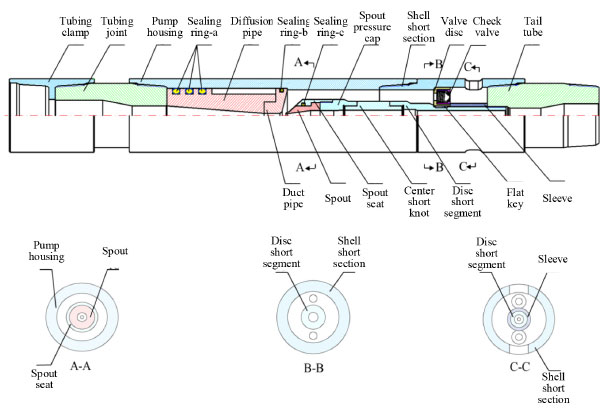 METHODOLOGY Mathematical model For the working process of the jet pump, the fluid is usually described by the following basic control equations. Continuity equation ![]() The physical meaning of the equation is that: in unit time, the mass difference of the inflow and the mass change of the outflow are equal to zero when the fluid passes through the unit volume. For an incompressible fluid, due to the density ρ that is constant, the continuity equation can be expressed as follows: ![]() The momentum conservation equation (Navi-Stokes equation): ![]() where, p0 is static pressure (Pa), τij (i j can be taken as, x y, and z, respectively) is the tensor of stress (Pa), fk (k can be taken as, x, y, and z, respectively) is volume force of gravity (N m−3). Realizable k-ε model The jet pump in this paper is a typical turbulence model, in which the equations can be expressed as: ![]() where, Sij is time-averaged strain rate (s−1), S is the tensor modulus of the average strain rate. Physical model The structure of the jet pump is shown in Figure 1 and the initial structural parameters of jet pump are shown in Table 1.