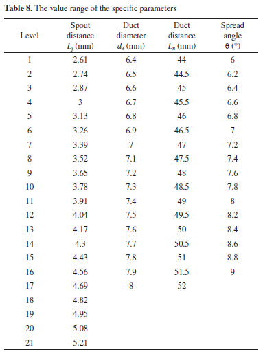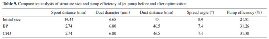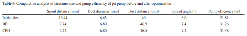 Structural optimization of the jet pump based on the BP neural network In order to further obtain the optimal structure of the jet pump, more levels of parameters are selected to predict the pump efficiency to determine the optimal structural parameters. The value range of the specific parameters is shown in Table 8.