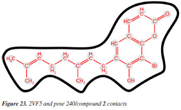 CONCLUSIONS The novel synthetic compounds 2 and 4 via bromination reactions are performed. Compound 2 inhibited well both Staphylococcus aureus and Bacillus cereus bacteria than compound 1. The complex of pose 240 and 2VF5 indicated the strongest stability in simulation time from 0 to 100 ns. The full interaction simulation course, MD of 2VF5:PDB and compound 2 indicated the hydrophilic property of compound (2) or pose 240.