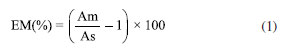 O efeito matriz (EM) foi avaliado de acordo com o guia SANTE16 comparando as inclinações das curvas preparadas no extrato branco da matriz e no solvente (acetonitrila). O EM foi calculado para cada versão do método QuEChERS e os resultados são mostrados na Tabela 3. Pode-se observar que, para o método QuEChERS original (T1), dos 83 agrotóxicos avaliados, 74 apresentaram resultados de efeito matriz entre -20 e +20%, considerado insignificante.
